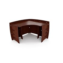 - Modular 47-inch-by-47-inch corner desk with stylish curvilinear design